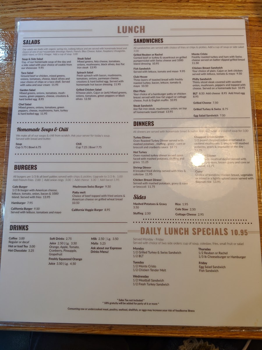 Highland Cafe & Bakery in St Paul, MN, is a cherished local spot known for its hearty American breakfast and classic diner fare. The menu features comforting homemade soups and chili, alongside sandwiches like the iconic grilled Reuben or Rachel, packed with corned beef or turkey on grilled pumpernickel. Breakfast lovers rave about generous portions of country fried steak, cinnamon French toast, and fresh-baked apple fritters, all complemented by rich coffee, tea, and craft beverages. The bakery’s light and fluffy chocolate silk pie offers a perfect sweet finish. This cafe balances nostalgic flavors with a cozy atmosphere, creating an inviting experience where each dish tastes like home. Service is friendly and personal, adding to the charm. Whether you crave a robust breakfast or a satisfying lunch sandwich, Highland Cafe & Bakery delivers classic taste with a welcoming vibe that keeps guests coming back.
